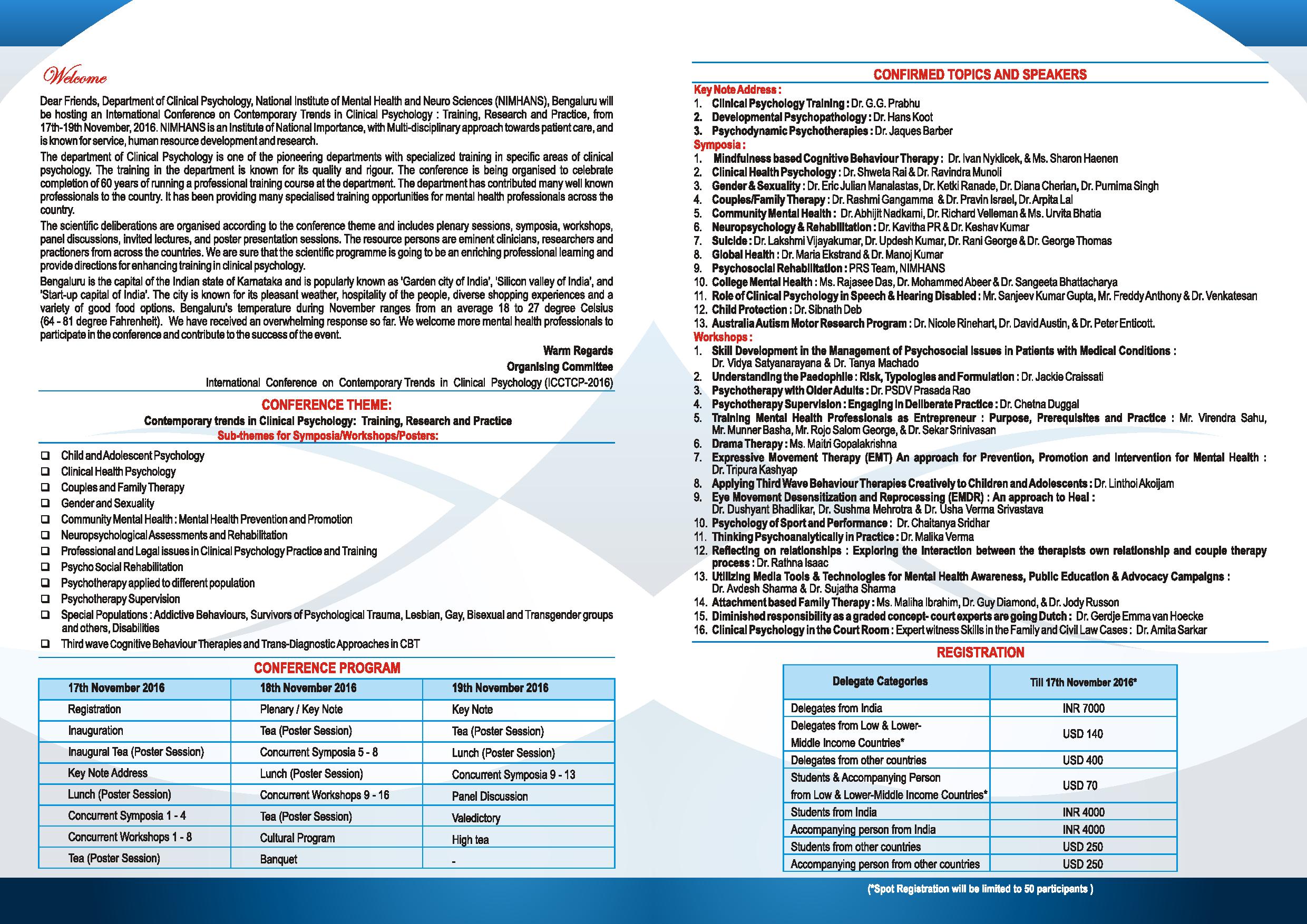 Final Call: International Conference on Contemporary trends in Clinical Psychology Training, Research and Practice Posted on November 1, 2016November 2, 2016 by admin 17-19th November 2016 To Download click here To Download click here